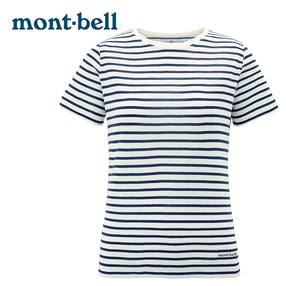 【Mont-bell 日本】WIC. STRIPED 短袖圓領排汗衣 女 白/藍 (1114543)|運動上衣 短T白/藍 S|白/藍 M|白/藍 L|白/藍 XLT-shirts山風戶外用品店