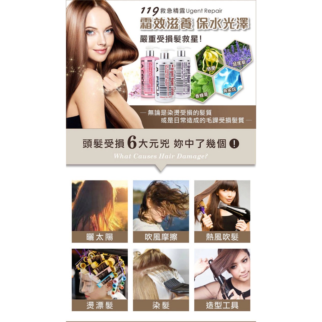 【LA FOCUS 蕾舒法克】119救急菁露 300ml 護髮 免沖洗護髮 染燙修護 護色 受損髮 D000278 x!119救急菁露|(紫)救急菁露-護色修補|櫻花嚴損救急菁露Hair Treatment小髮廊 Hair Salon