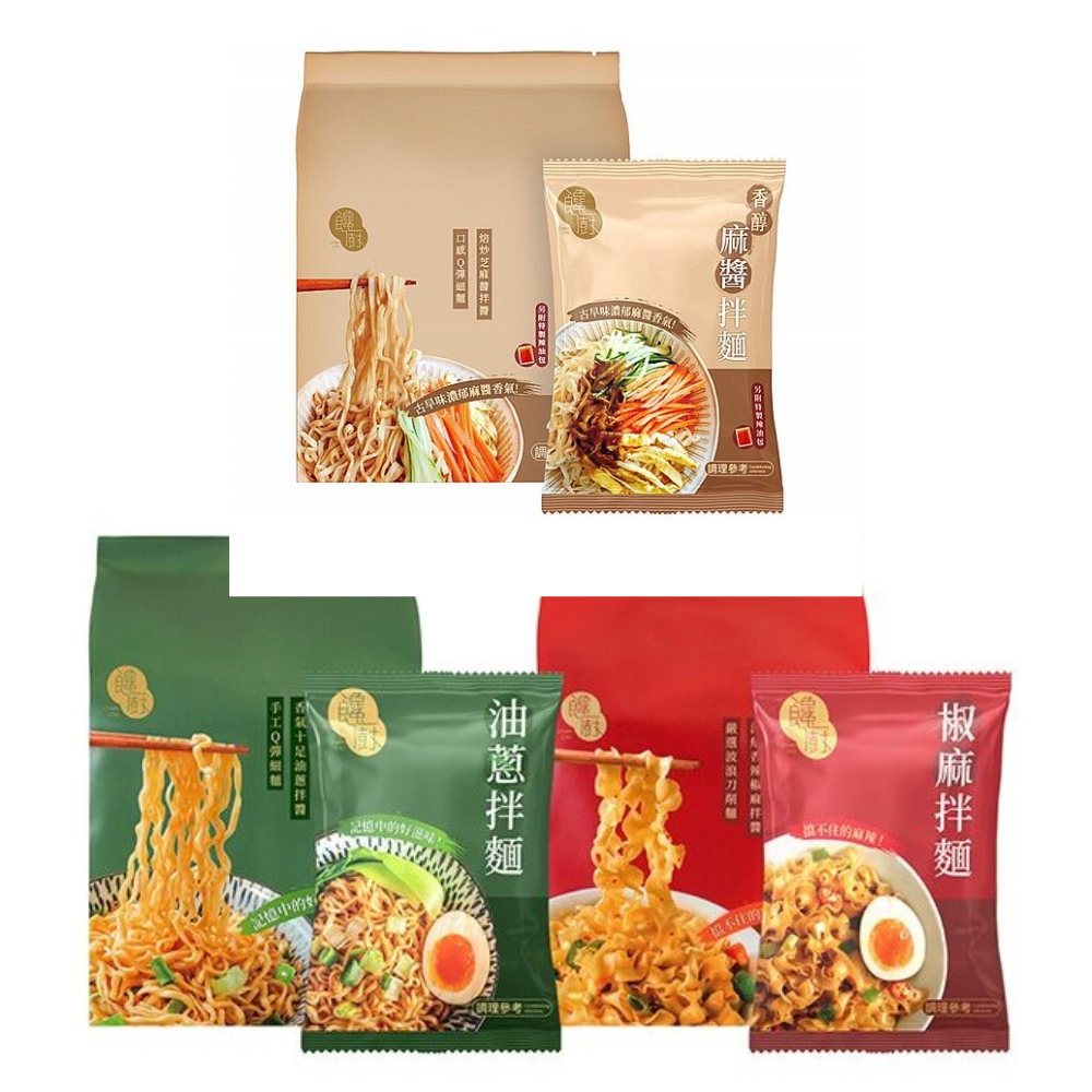 【饞廚】乾拌麵 (4入) 椒麻 油蔥 香醇麻醬 居家必備 宵夜 乾麵 快煮麵 露營 拌麵 晚餐 DS007102 X椒麻口味4入|油蔥口味4入|香醇麻醬口味4入Noodles小髮廊 Hair Salon