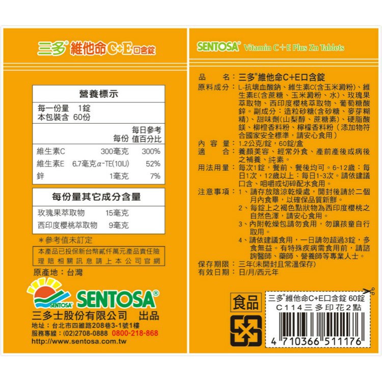 三多 維他命C+E口含錠60錠【仁仁藥局】三多 維他命C+E口含錠60錠【仁仁藥局】Well Being仁仁藥局線上購物