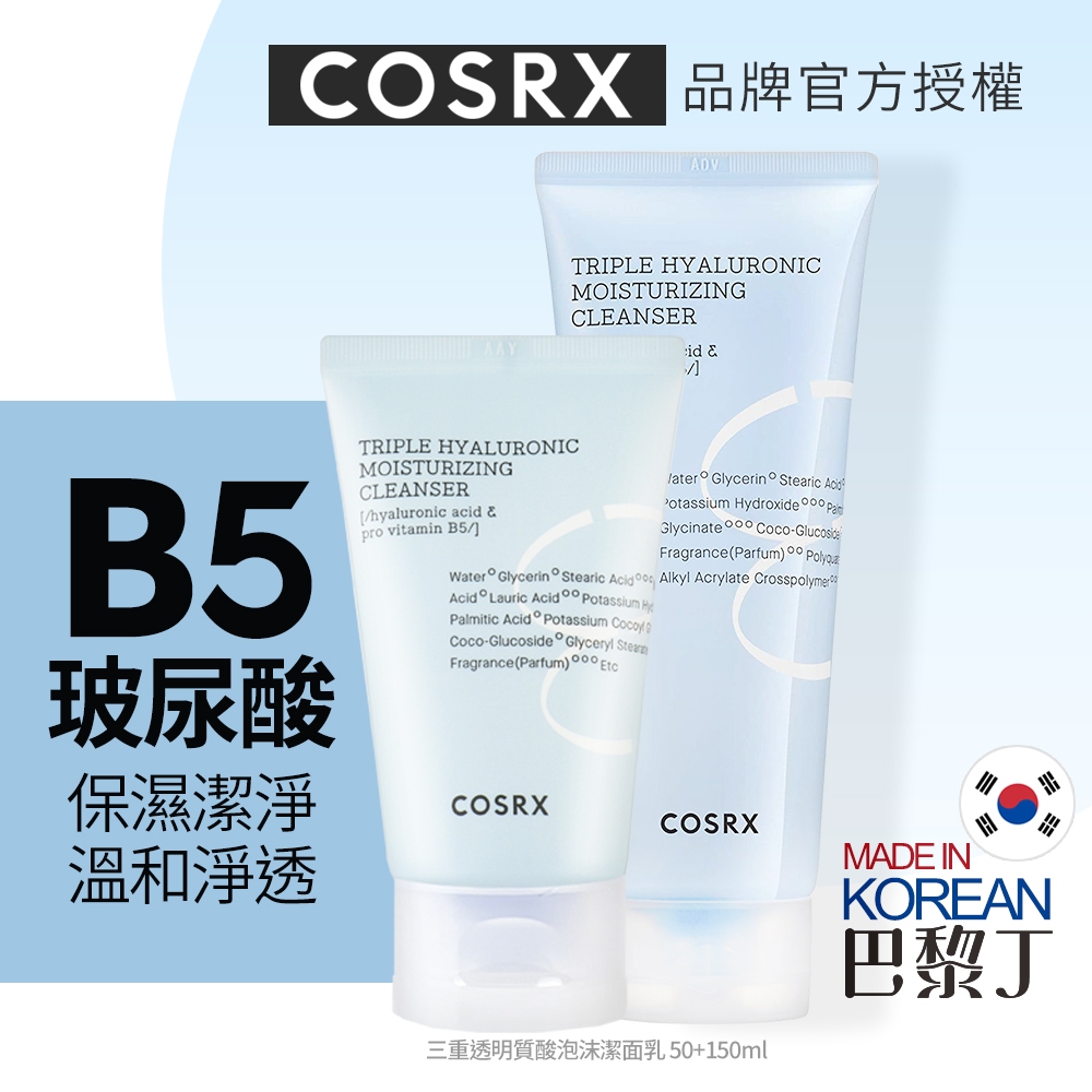 COSRX 珂絲艾絲 三重透明質酸保濕鎖水泡沫潔面乳 洗面乳 50ml / 150ml【巴黎丁】50ml (26/06)|150mlFacial Cleanser巴黎丁 – 法國美妝保養直營店