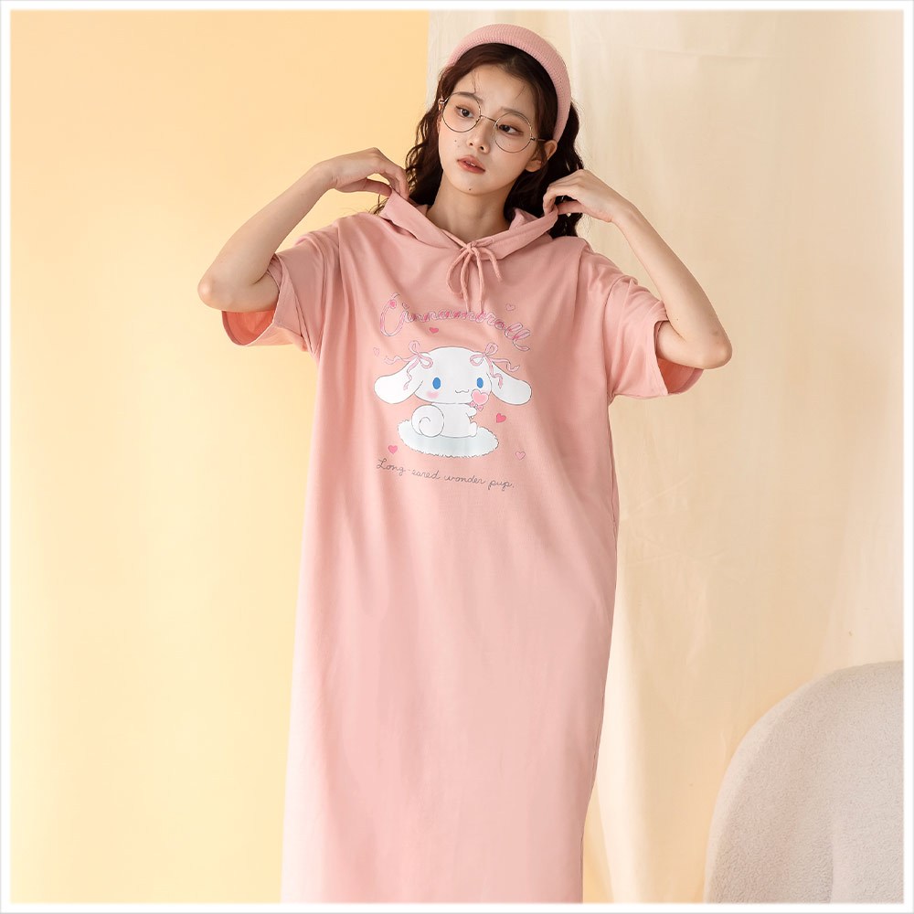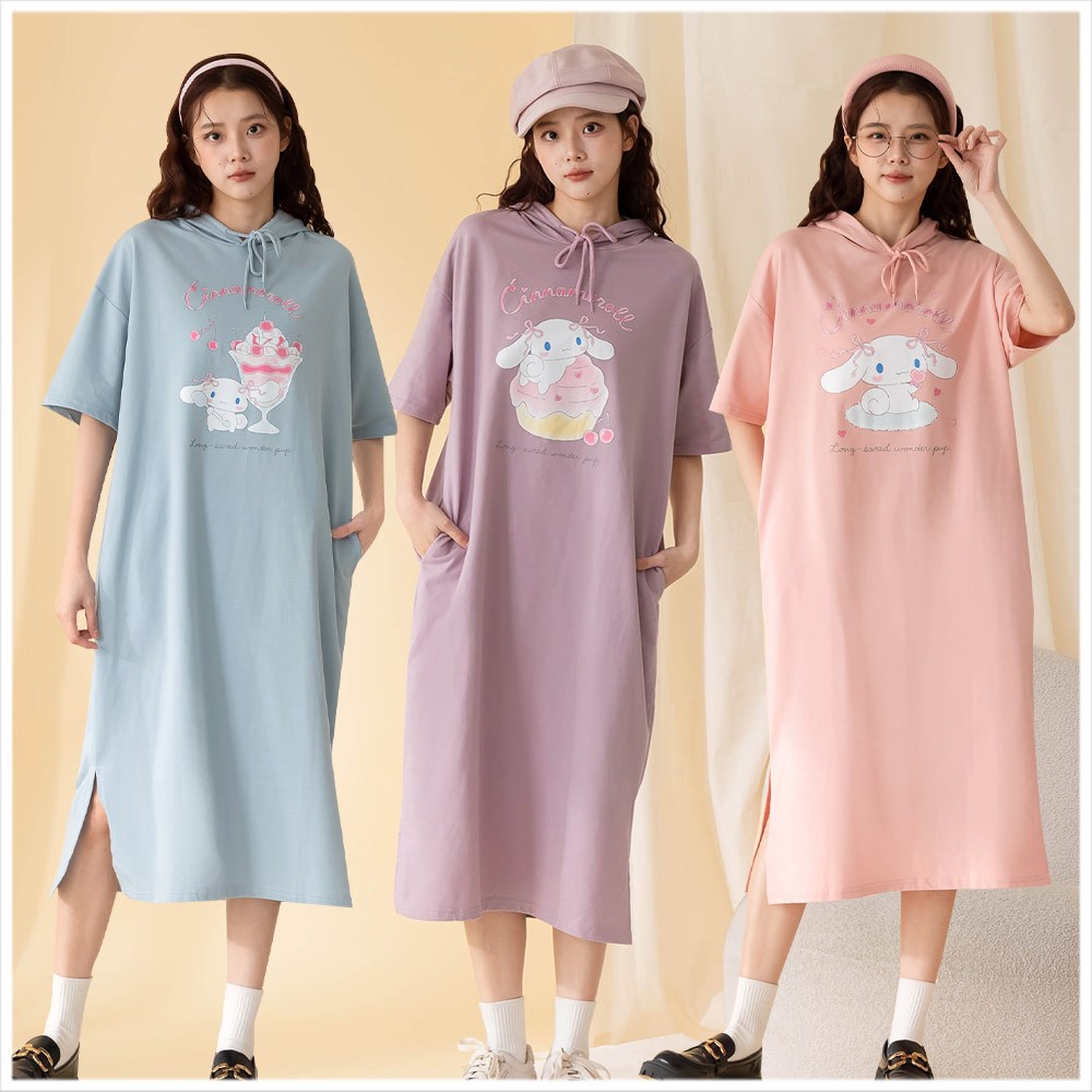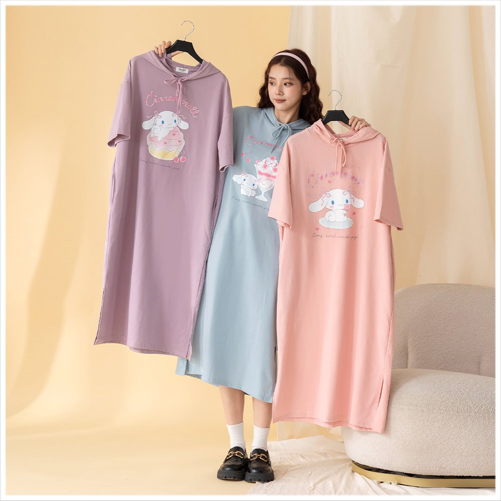 天藍小舖-三麗鷗蝴蝶結大耳狗連帽長版上衣-共3色-A28280437薰衣草|梅粉|霧藍Hoodies天藍小舖 SkyBlue
