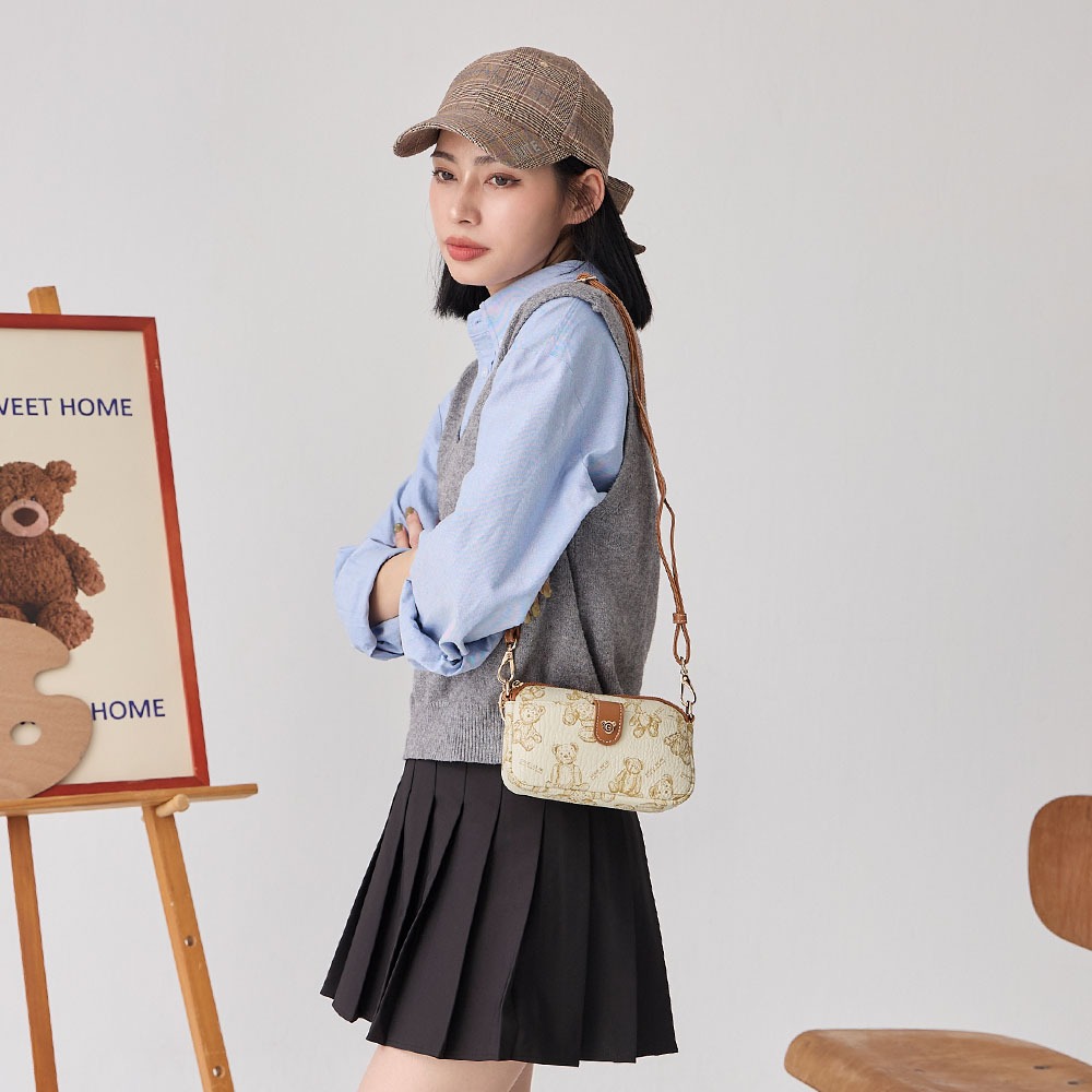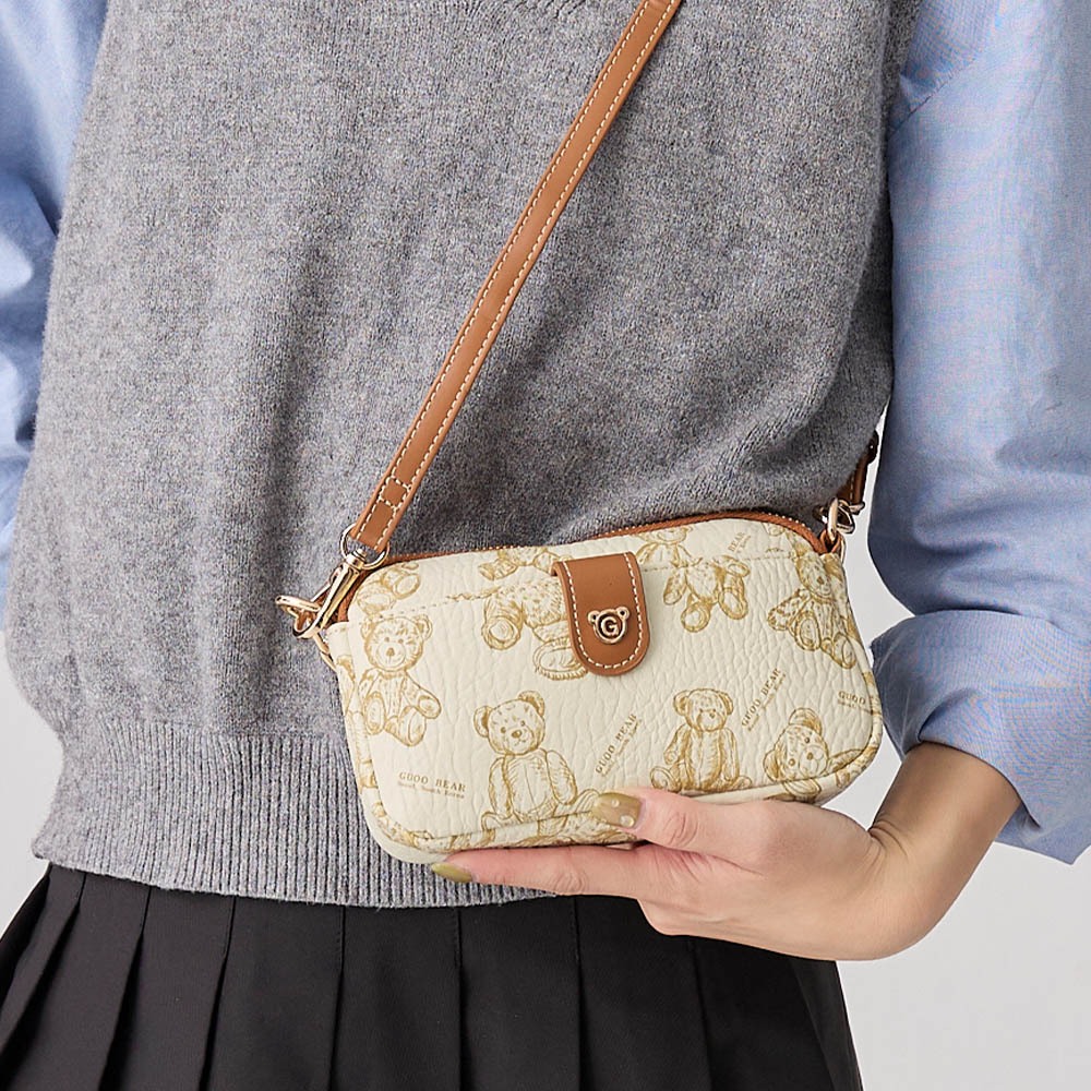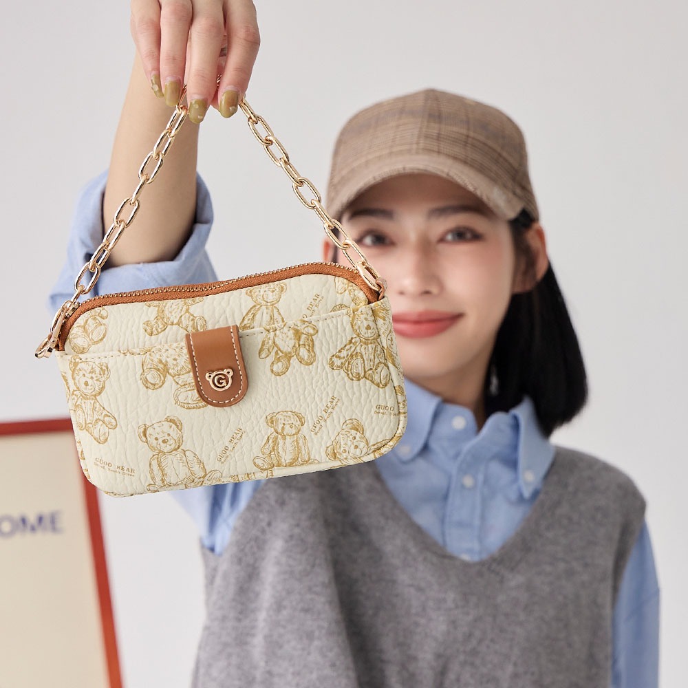 天藍小舖-GUOO BEAR手繪小熊鍊條皮革斜背包-單1款-A17175090米白天藍小舖 SkyBlue