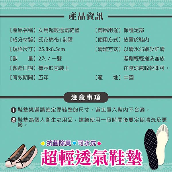 女用超輕透氣鞋墊(1雙入) 福可 【小三美日】D617293單一規格Insoles & Heel Liners小三美日