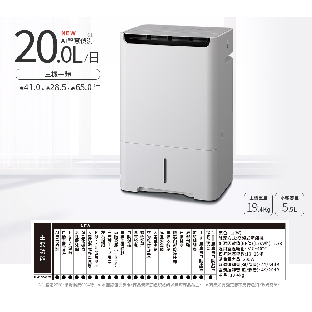 MITSUBISHI 三菱 日製20公升一級能效除濕機 MJ-EHV200JW-TWMITSUBISHI 三菱 日製20公升一級能效除濕機 MJ-EHV200JW-TWAir Treatment心科技・生活家電館