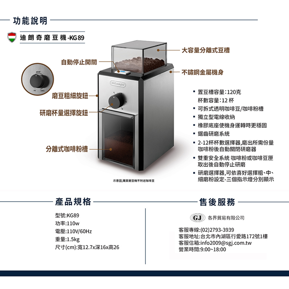 【福利品】迪朗奇 豪華不銹鋼全自動磨豆機 KG89【福利品】迪朗奇 豪華不銹鋼全自動磨豆機 KG89Coffee Machines & Accessories心科技・生活家電館