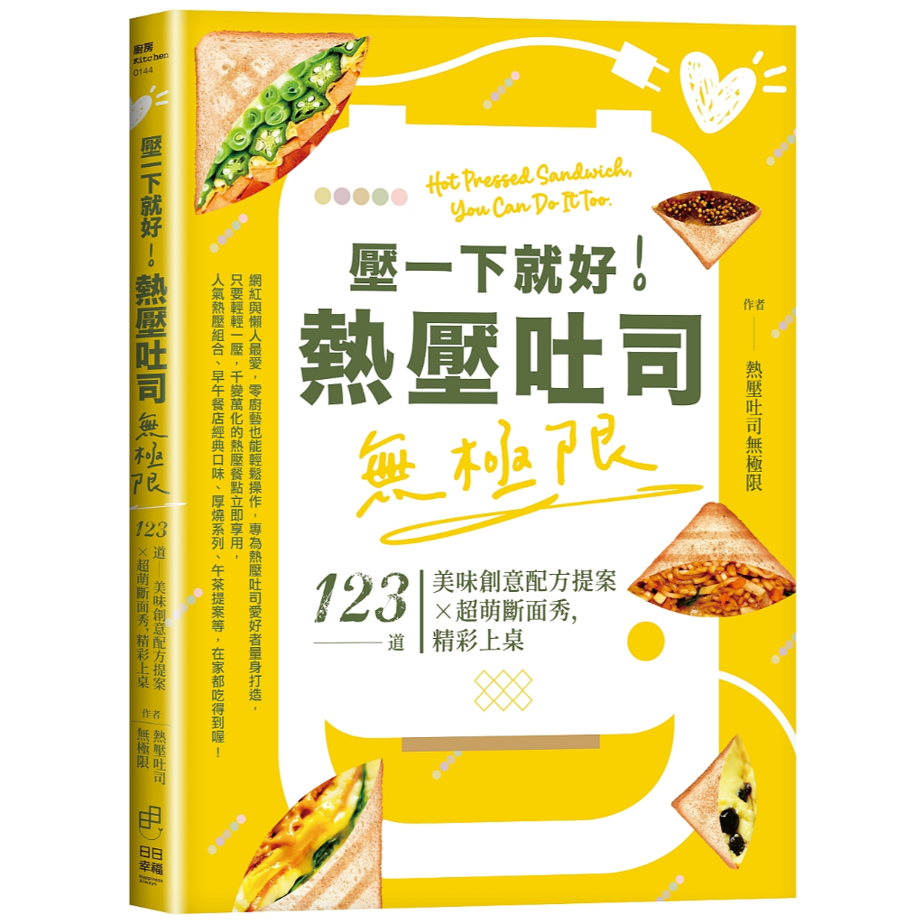 日日幸福(福利品)《壓一下就好!熱壓吐司無極限–123道美味創意配方提案×超萌斷面秀,精彩上桌》/熱壓吐司無極限日日幸福(福利品)《壓一下就好!熱壓吐司無極限–123道美味創意配方提案×超萌斷面秀,精彩上桌》/熱壓吐司無極限Recipes & Cooking日日幸福日日學