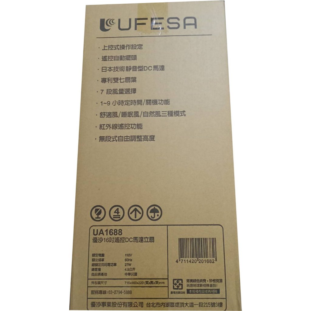 【UFESA】16吋 遙控DC變頻節能風扇《UA1688》【UFESA】16吋 遙控DC變頻節能風扇《UA1688》Cooling丹尼爾3C家電