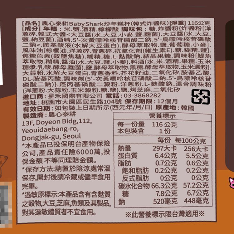 農心泰耕 Baby Shark 炒年糕杯 (1杯) 甜辣醬/韓式炸醬/白醬 韓國炒年糕 露營【小三美日】DS025927甜辣味|韓式炸醬味|白醬味Instant Noodles小三美日