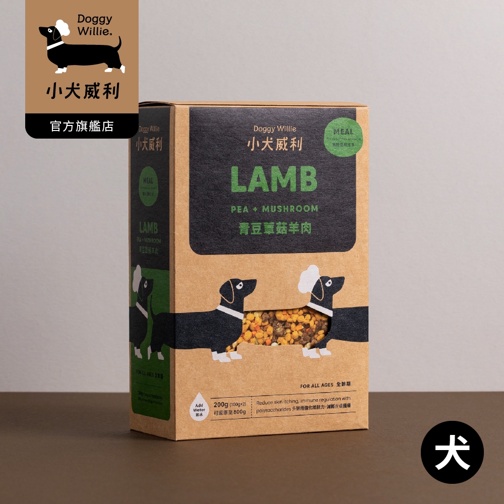【DoggyWillie小犬威利】冷凍乾燥狗狗MEAL主食 青豆蕈菇羊肉200g 減重 皮膚保健 寵物主食 健康天然超值精裝包200g|滿足大包裝800g【配送請選箱配】Dog Food小犬威利官方商城