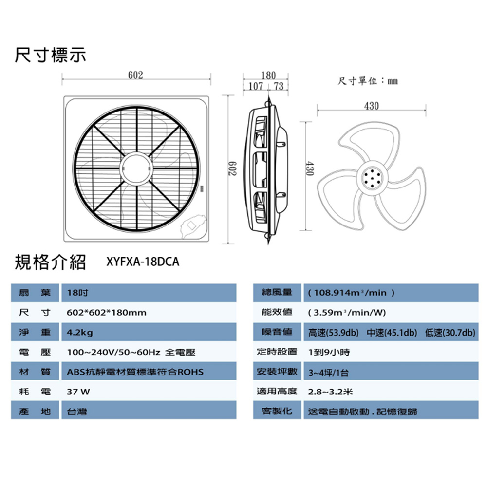 (輸碼95折 HEMAL95AG)TECO 東元18吋輕鋼架/天花板 DC節能循環扇 XYFXA-18DCA輕鋼架|風管型|吸頂型Cooling元元生活家電館