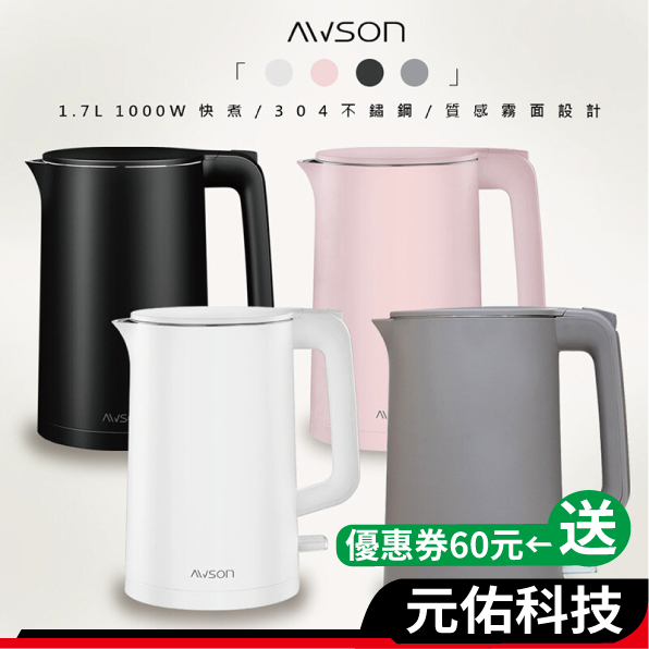 日本 AWSON 歐森 AS-HP0175 不鏽鋼快煮壺 1.7L 快煮壺 熱水壺 電熱水壺 煮水壺 電茶壺 電水壺AS-HP0175 電熱水壺【白色】|AS-HP0175 電熱水壺【黑色】|AS-HP0175 電熱水壺【粉色】|AS-HP0175 電熱水壺【灰色】Kettles元佑科技購物網 | 領券10%蝦幣回饋