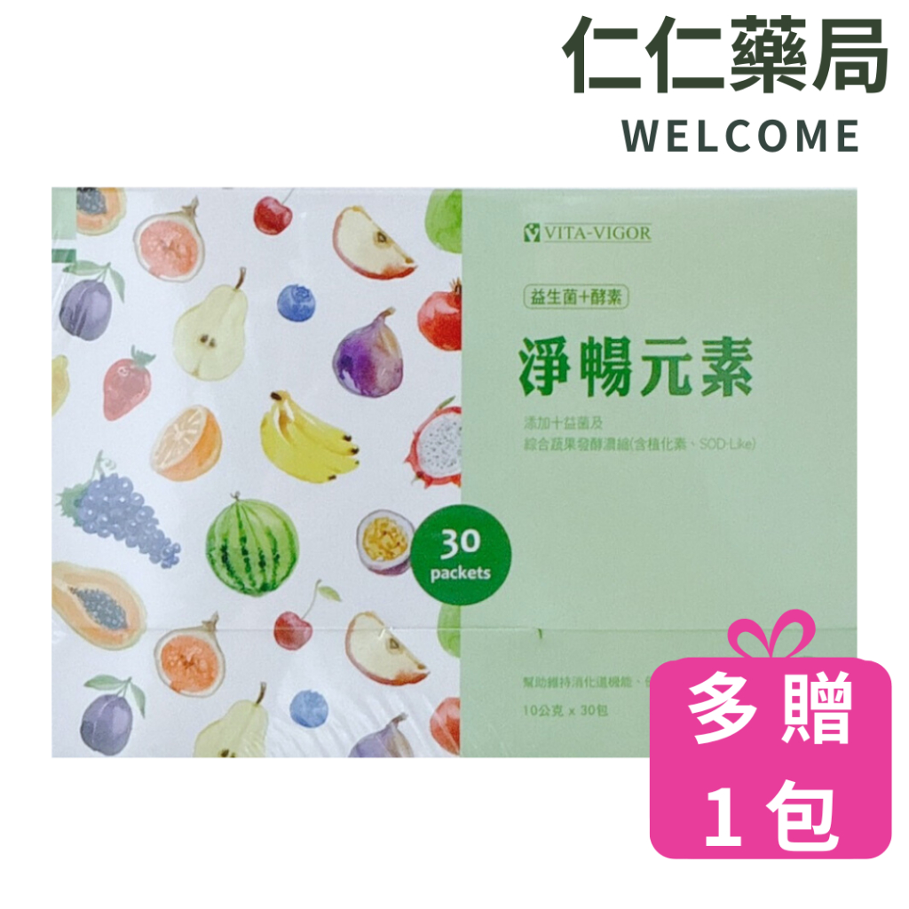 維格 淨暢元素10克×30包/盒【仁仁藥局】益生菌 酵素 綜合蔬果發酵濃縮 益菌維格淨暢元素30包/盒(多贈1包)Well Being仁仁藥局線上購物
