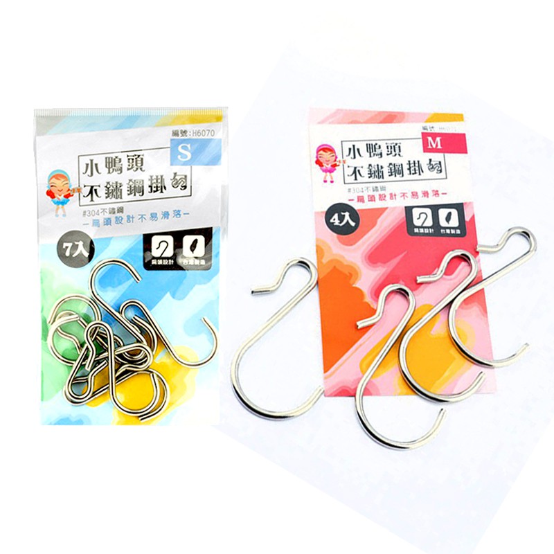 台灣製 小鴨頭不鏽鋼掛勾 (S 7入/M 4入) 置物勾置物鉤 懸吊勾 掛鉤 吊鉤 鉤子 不鏽鋼鉤 衣服掛鉤 網架鉤小鴨頭不鏽鋼掛勾 S (7入)|小鴨頭不鏽鋼掛勾 M (4入)Hooks中聯興家庭五金批發