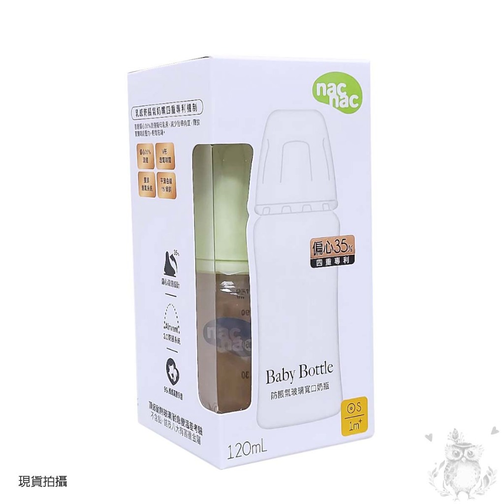 nac nac 妍心35%晶透防脹氣玻璃寬口奶瓶120ml 240ml-茉莉綠120ml|240mlBottle-feeding山夜貓頭鷹親子生活館