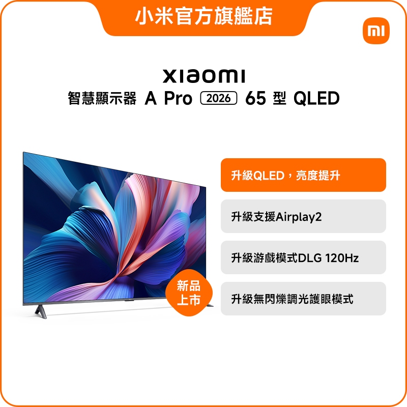 Xiaomi 智慧顯示器 A Pro 2026 65型 QLED -偏遠地區配送收費標準詳見圖文內容Xiaomi 智慧顯示器 A Pro 2026 65型 QLED -偏遠地區配送收費標準詳見圖文內容TVs小米官方旗艦店