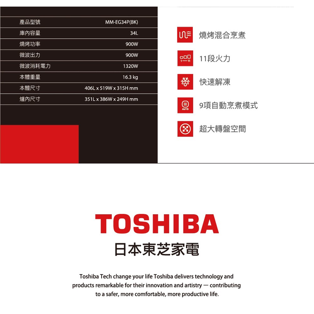 (輸碼95折 HEMAL95AG)TOSHIBA 東芝 34L燒烤料理微波爐 MM-EG34P(BK)(輸碼95折 HEMAL95AG)TOSHIBA 東芝 34L燒烤料理微波爐 MM-EG34P(BK)Microwaves元元生活家電館