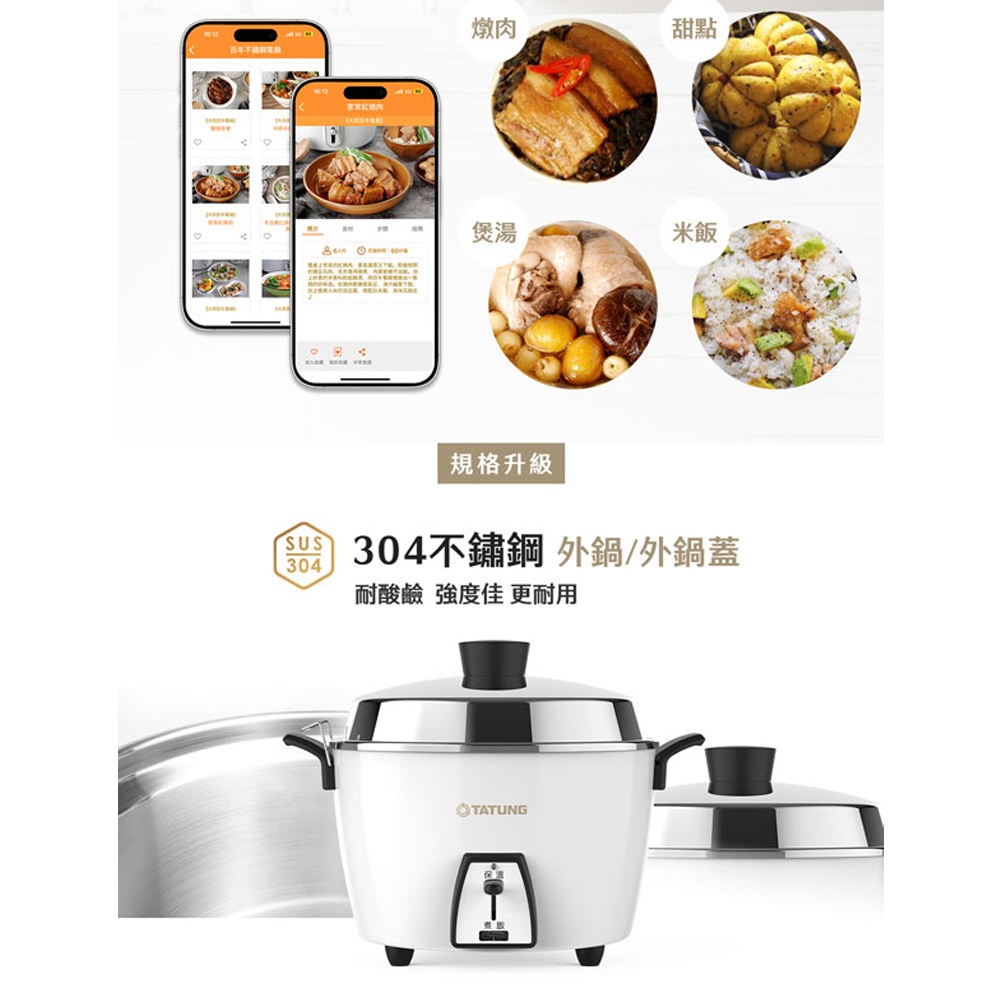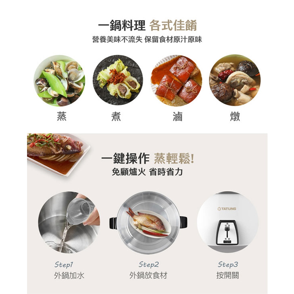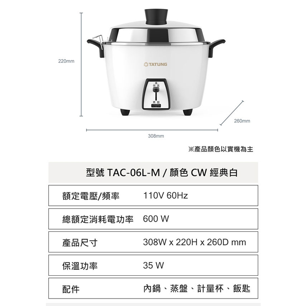 (輸碼95折 HEMAL95AG)TATUNG大同 6人份不鏽鋼配件電鍋 TAC-06L-MCW(輸碼95折 HEMAL95AG)TATUNG大同 6人份不鏽鋼配件電鍋 TAC-06L-MCWRice Cookers元元生活家電館