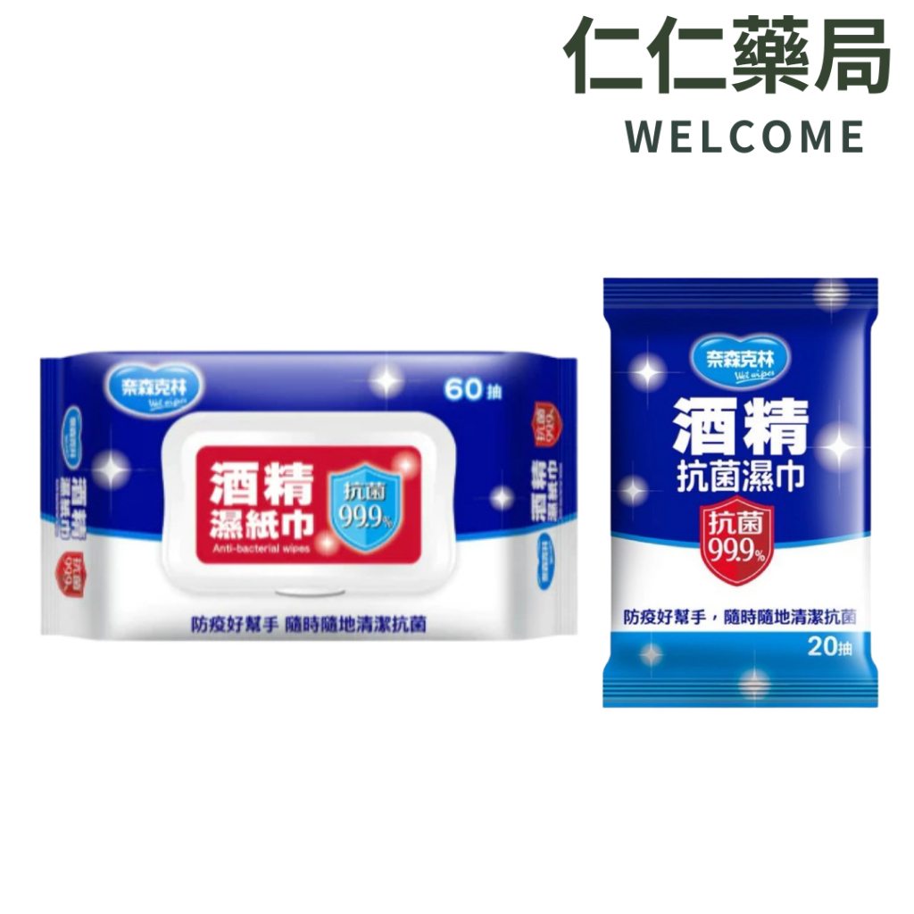 奈森克林 酒精濕紙巾 20抽/60抽【仁仁藥局】奈森克林酒精濕紙巾20抽|奈森克林酒精濕紙巾60抽(附蓋)Wipes仁仁藥局線上購物