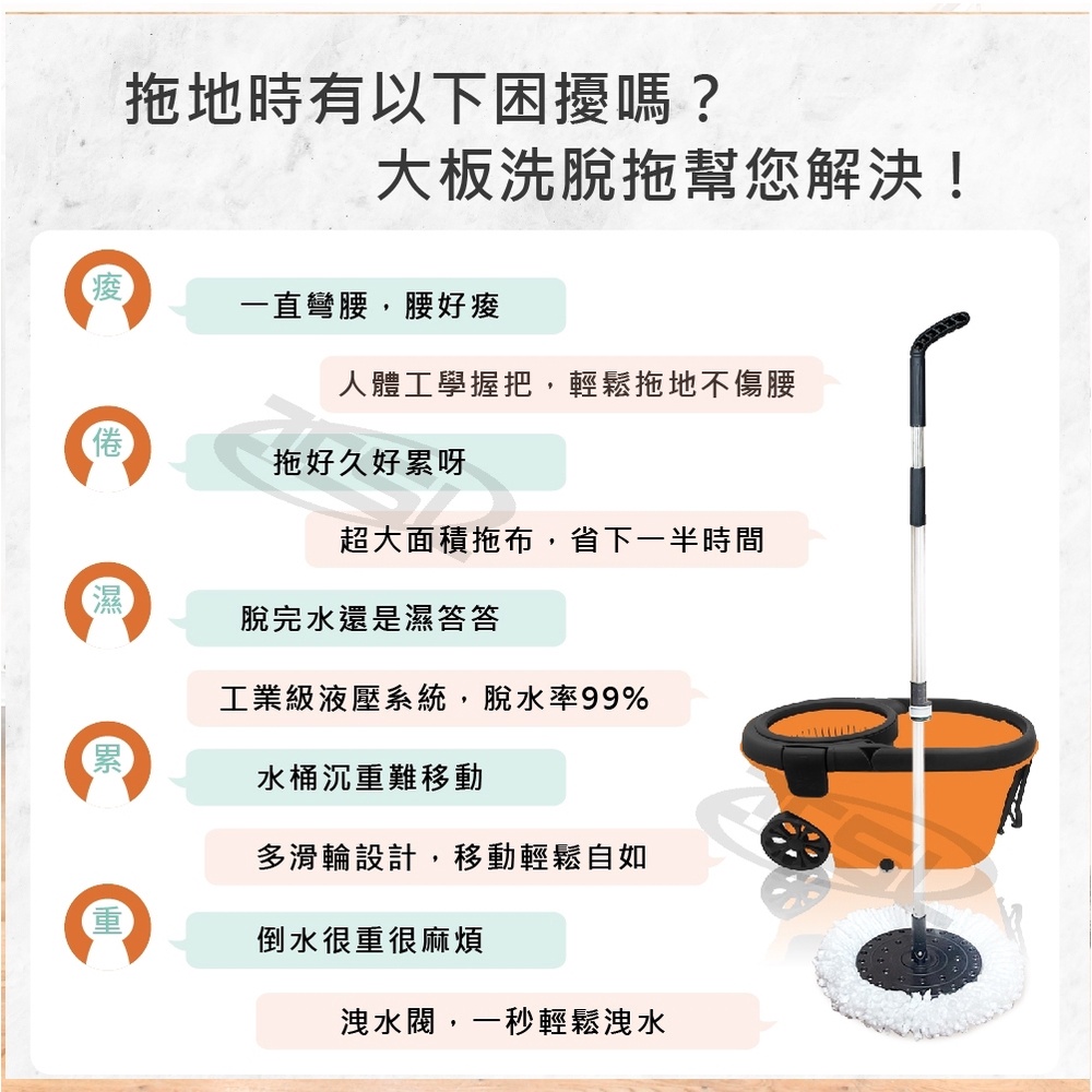 大板拖 商用拖把 台灣製 手壓旋轉拖把水桶組 新潮流 大板 洗脫拖 高效率大板拖 水桶拖把 乾溼分離 旋轉拖 拖把