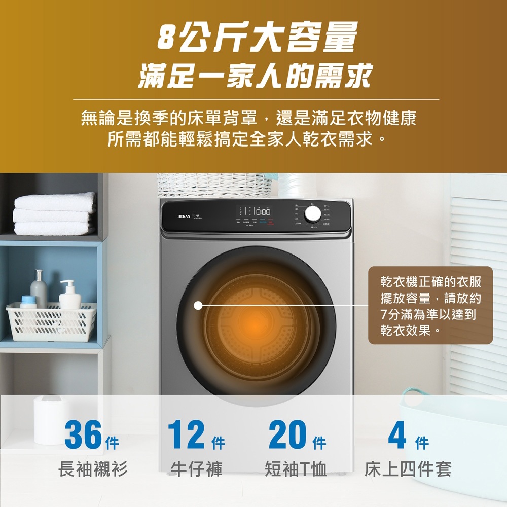 (輸碼95折 HEMAL95AG)HERAN 禾聯 8KG 熱風式乾衣機 HDM-0841(輸碼95折 HEMAL95AG)HERAN 禾聯 8KG 熱風式乾衣機 HDM-0841Washing Machines & Dryers元元生活家電館