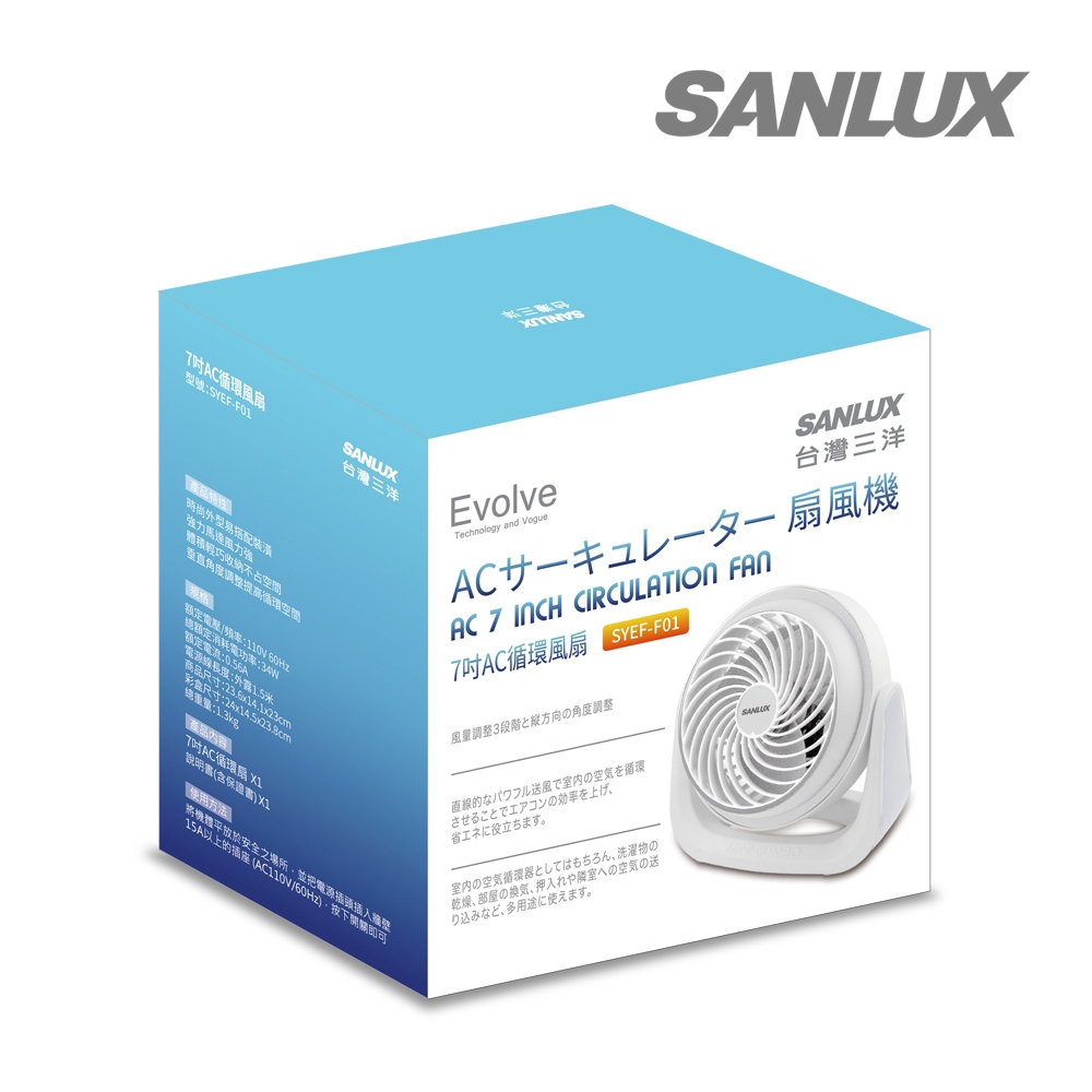 SANLUX 台灣三洋 7吋AC循環風扇 電風扇 循環扇 涼風扇 電扇 風扇 AC風扇 SYEF-F01SANLUX 台灣三洋 7吋AC循環風扇 電風扇 循環扇 涼風扇 電扇 風扇 AC風扇 SYEF-F01Cooling元元生活家電館