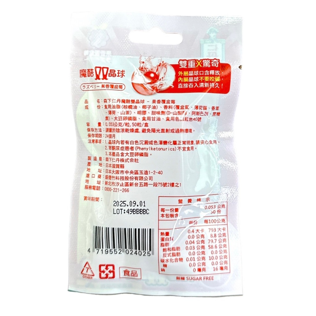 森下仁丹魔酷雙晶球 勁涼薄荷/果香覆盆莓 50顆/包【仁仁藥局】勁涼薄荷款|果香覆盆莓Well Being仁仁藥局線上購物
