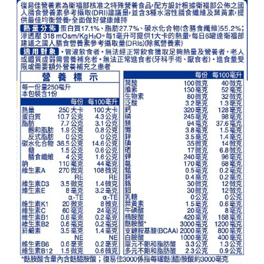 百仕可 復易佳3000營養素 復易佳 6000Plus 營養素 復易佳倍基營養素 特字號營養素 250mlx24罐/箱購復易佳 3000營養素(香草口味)/箱|復易佳3000營養素(原味)/箱|復易佳6000Plus營養素(減糖)/箱|復易佳倍基營養素/箱Well Being仁仁藥局線上購物