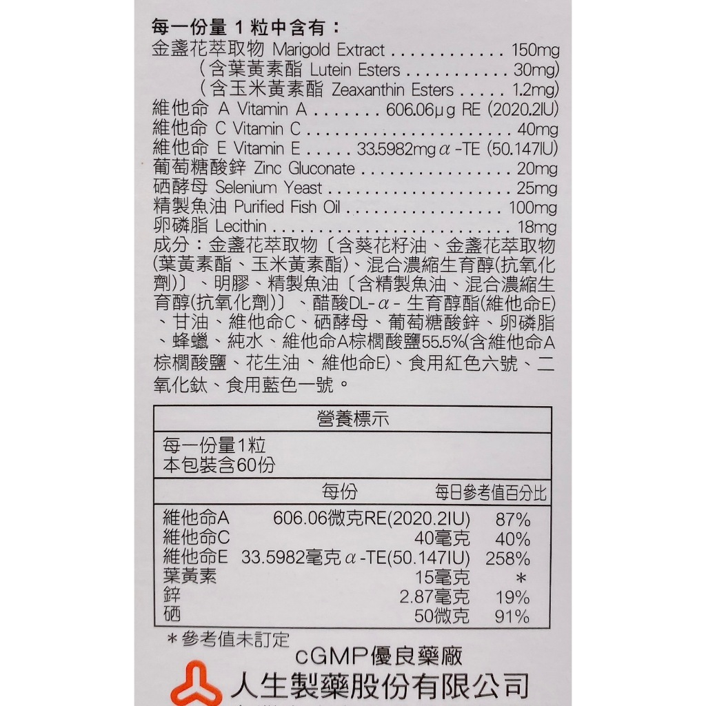 渡邊 葉黃素複方軟膠囊60粒【仁仁藥局】人生製藥