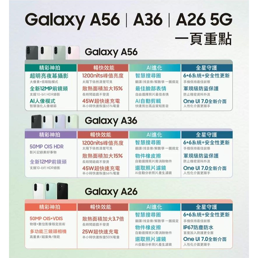 Samsung Galaxy A36 5G (8G+128G) 6.7吋智慧手機 買就送 強化空壓殼 / 滿版鋼保 /超夜光紫|秘境黑|滑雪白|極光綠仁欽3C館