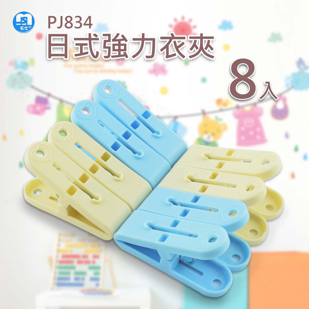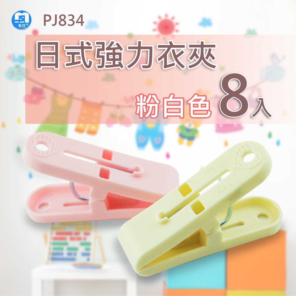 台灣製 日式強力衣夾(8入) 衣夾 晾衣夾 曬衣服 晾衣服 曬衣夾 衣物夾 衣服夾 晒衣夾粉色+白色|藍色+白色Hangers & Pegs中聯興家庭五金批發