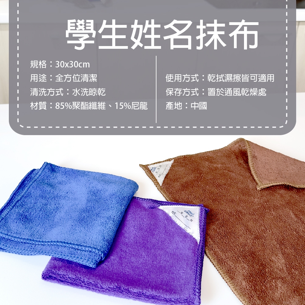 學生超纖抹布 可填姓名 學校抹布 擦拭抹布 吊掛抹布 擦拭布 廚房抹布 家用抹布 大掃除 擦傢俱隨機出,顏色缺貨時,買家同意顏色隨機出貨|粉色,顏色缺貨時,買家同意顏色隨機出貨|紫色,顏色缺貨時,買家同意顏色隨機出貨|藍色,顏色缺貨時,買家同意顏色隨機出貨|咖啡色,顏色缺貨時,買家同意顏色隨機出貨Cleaning Cloths中聯興家庭五金批發