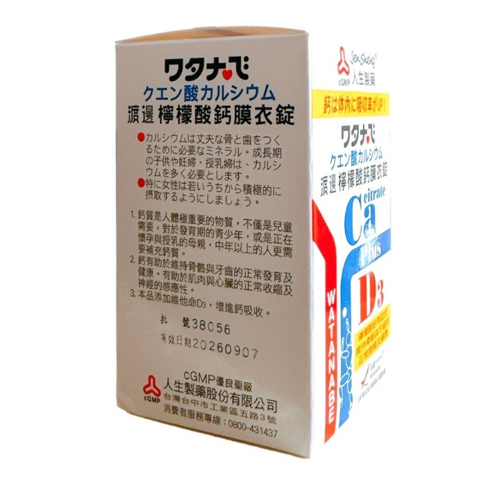渡邊 檸檬酸鈣膜衣錠60錠/盒【仁仁藥局】渡邊 檸檬酸鈣膜衣錠60錠/盒【仁仁藥局】Well Being仁仁藥局線上購物