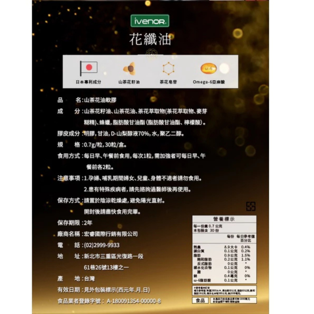 【IVENOR】花孅籽30粒/盒【仁仁藥局】 花纖油 山茶花籽 (郭婷筠余祥銓代言推薦)IVENOR花孅籽30粒/盒|IVENOR花孅油30粒/盒Weight Management仁仁藥局線上購物