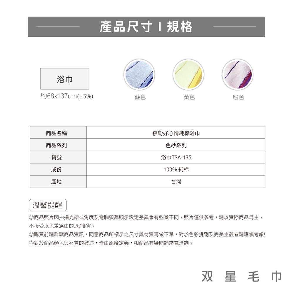 【双星毛巾Gemini】繽紛好心情純棉浴巾|純棉浴巾推薦|柔軟吸水|前染色紗|藍|粉|黃Towels & Bathrobes双星毛巾 Gemini Towel 品牌旗艦館