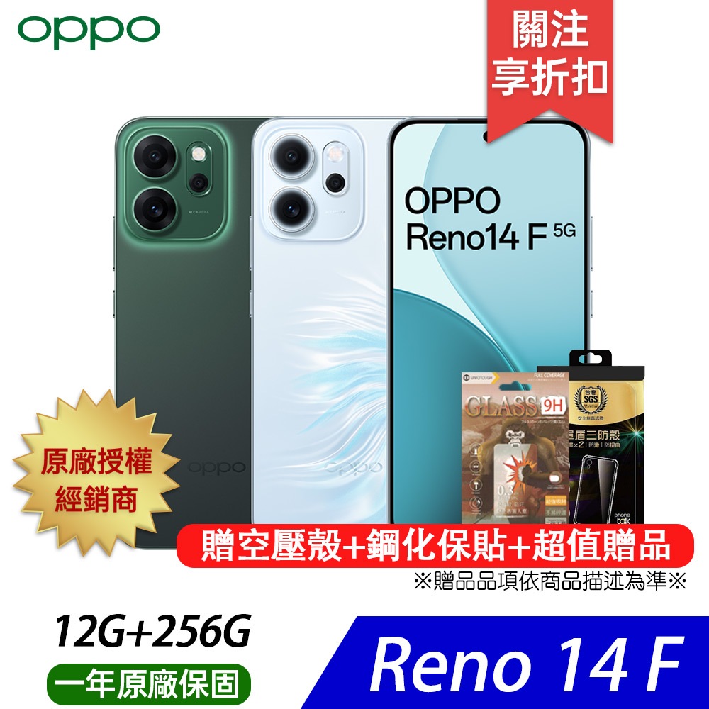 OPPO Reno14 F 5G (12G/256G) 6.57吋 買就送 強化空壓殼 / 滿版鋼保 / 超值好禮靜謐綠|絢彩藍仁欽3C館