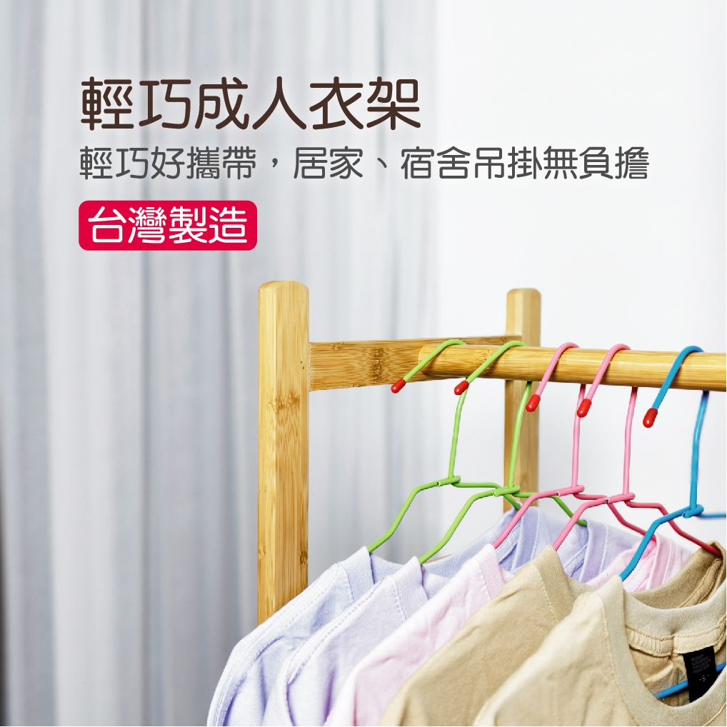 輕巧衣架(10入) 台灣製 成人衣架 輕巧便利 曬衣架 吊衣架 掛衣架 晾衣服 吊衣服 衣櫃收納綠色 (缺色時,隨機出貨,超取每筆訂單最多10組|藍色 (缺色時,隨機出貨,超取每筆訂單最多10組|粉色 (缺色時,隨機出貨,超取每筆訂單最多10組|深紫 (缺色時,隨機出貨,超取每筆訂單最多10組Hangers & Pegs中聯興家庭五金批發