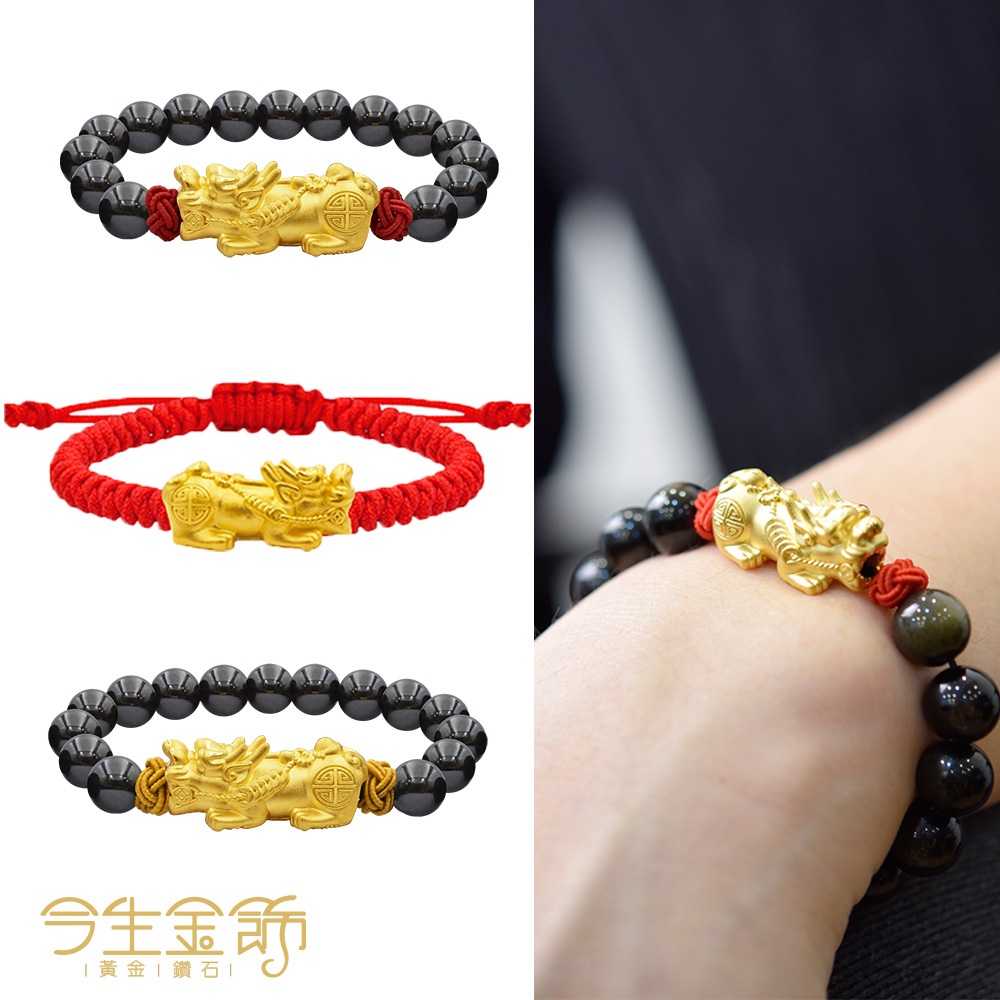 【今生金飾】五帝錢貔貅串珠-加大版 黃金串珠手環(任選一)(加大版)編織紅繩款|(加大版)金曜石-大地黃|(加大版)金曜石-低調紅Platinum & K Gold今生金飾 GoldenLife