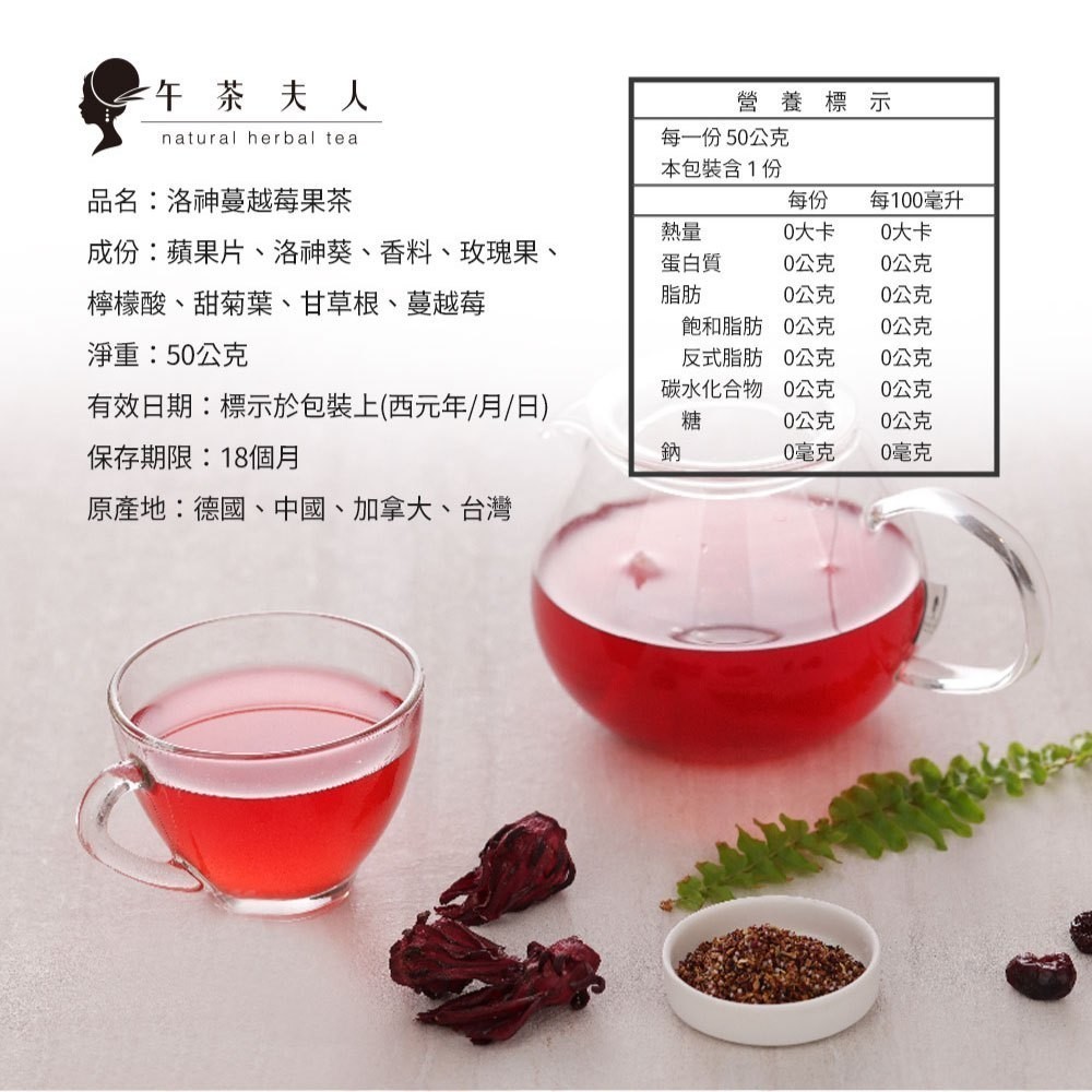 午茶夫人 洛神蔓越莓果茶 50g/袋【花茶|水果茶|無咖啡因】- 午茶夫人官方旗艦店1件組(50g)Tea & Tea Bags午茶夫人官方旗艦店