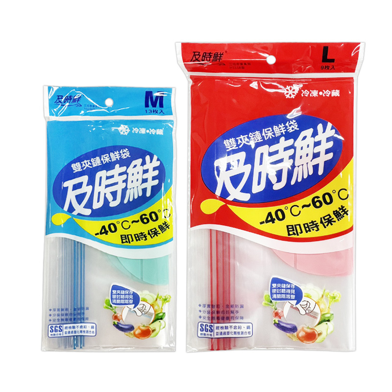 及時鮮 雙夾鏈保鮮袋(M/L) 分裝袋 冷藏袋 冷凍袋 密封袋 防潮袋 冰箱收納 冷藏收納 蔬果袋M-13枚入|L-9枚入Food Storage中聯興家庭五金批發