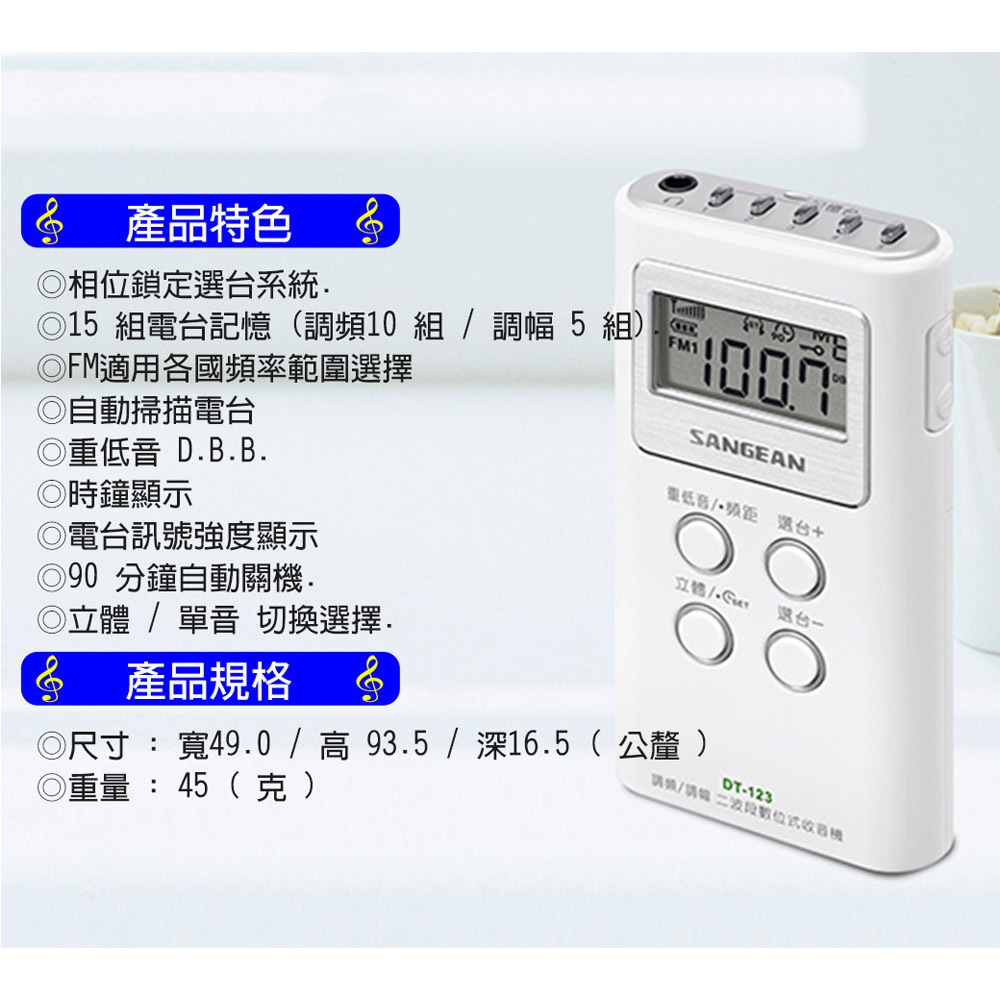 SANGEAN 山進 數位式FM/AM二波段口袋型收音機 DT-123 / DT123SANGEAN 山進 數位式FM/AM二波段口袋型收音機 DT-123 / DT123Radio & Cassette Players元元家電二館