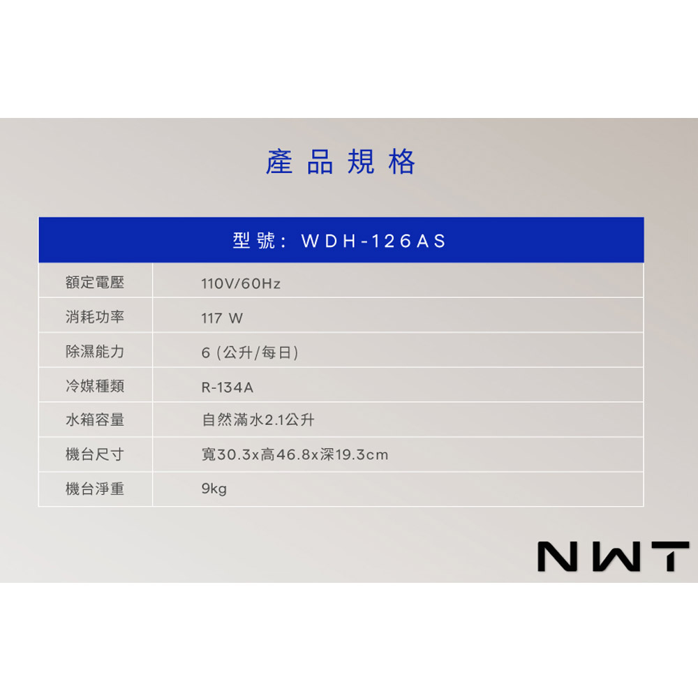 (輸碼94折 HEAUG94LD)NWT 威技 6L 除濕機 WDH-126A / WDH-126ASWDH-126AS(現貨)|WDH-126AS(限時特賣)Others元元生活家電館