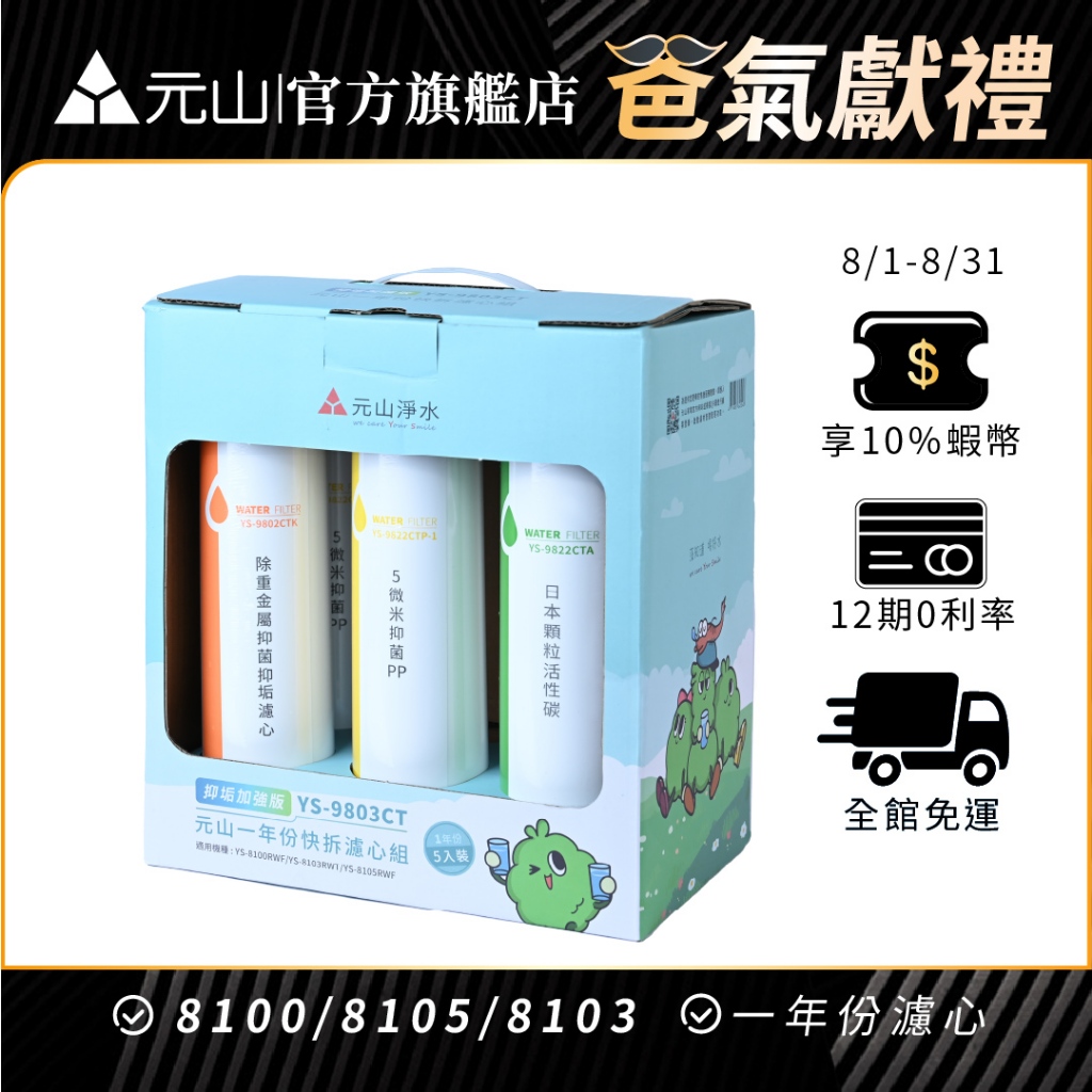 元山家電 YS-9803CT一年份五入盒裝濾心組 YS-8100RWF/YS-8105RWF淨飲機專用濾心元山家電 YS-9803CT一年份五入盒裝濾心組 YS-8100RWF/YS-8105RWF淨飲機專用濾心Water Filters, Coolers & Dispensers元山官方旗艦店
