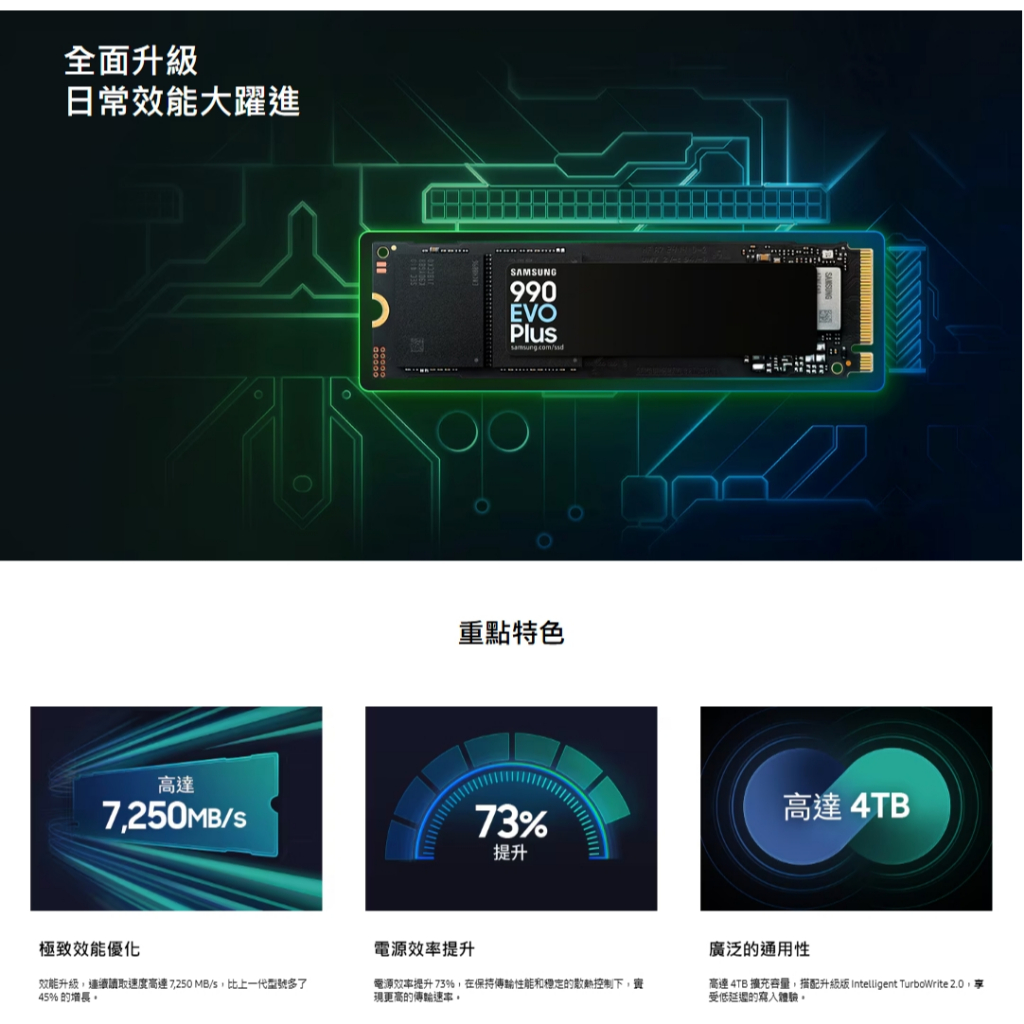 SAMSUNG 三星 990 EVO Plus 1TB 2TB 4TB PCIe 4.0 M.2 SSD 固態硬碟990EVO PLUS【 1 TB】|990EVO PLUS【 2 TB】|990EVO PLUS【 4 TB】SSD元佑科技購物網 | 領券10%蝦幣回饋