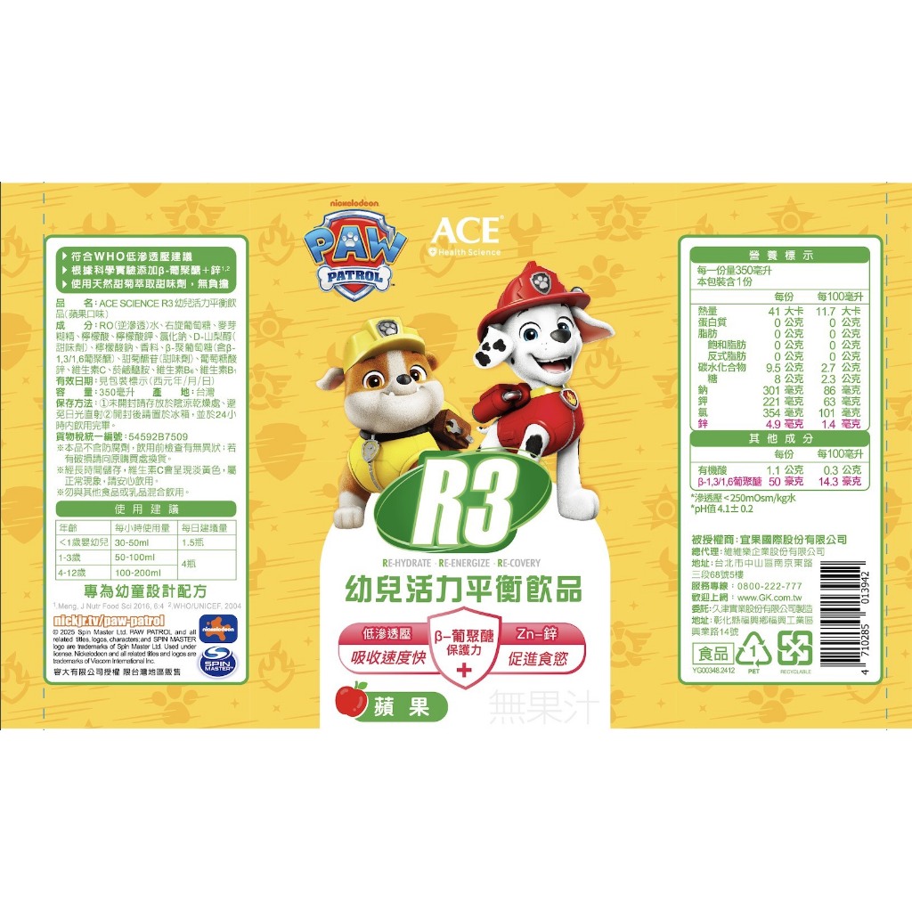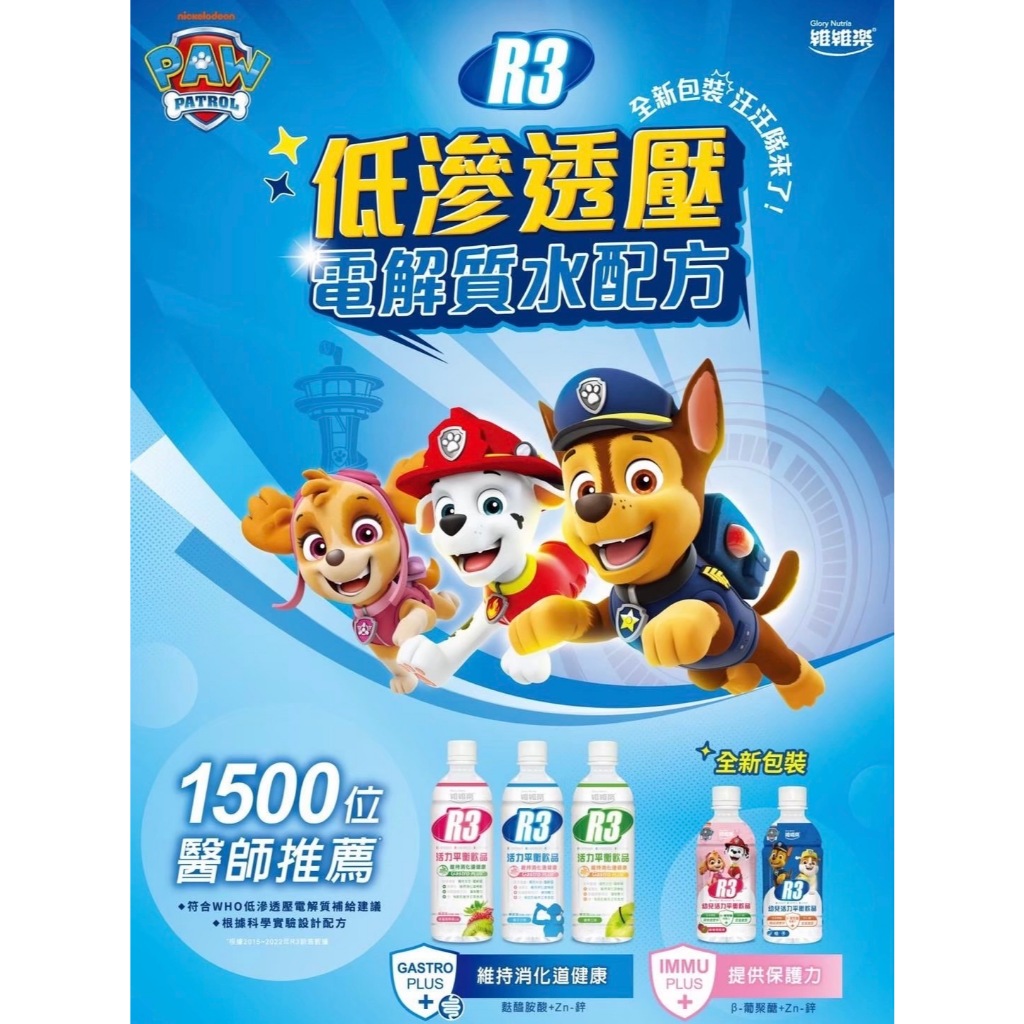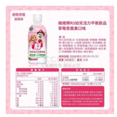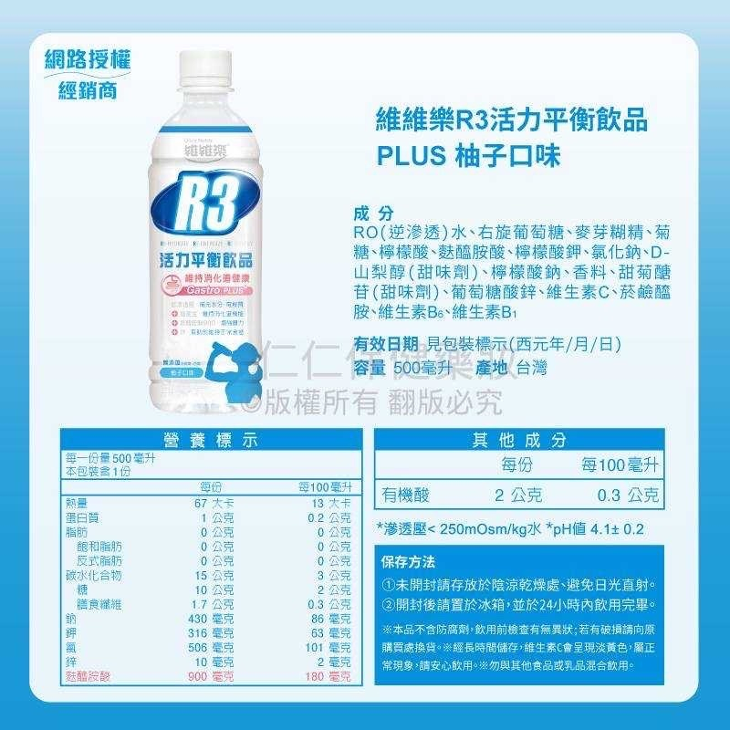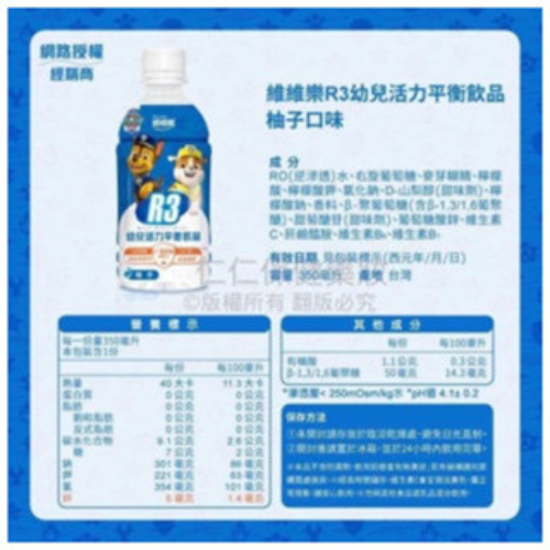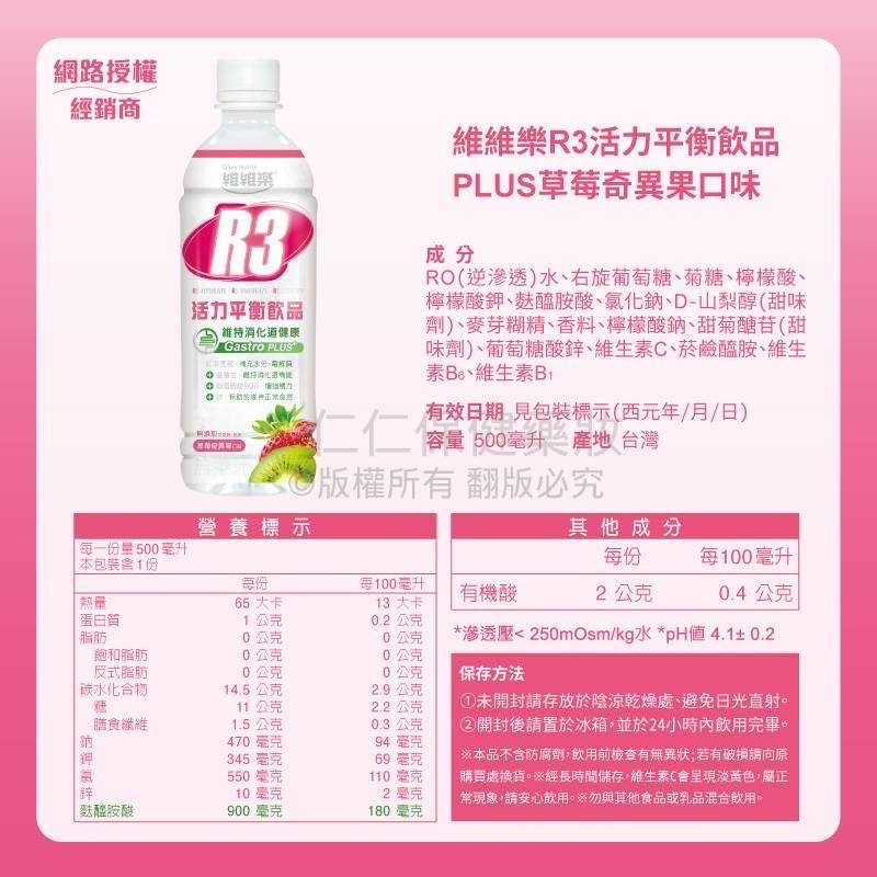 維維樂 R3活力平衡飲品 plus成人電解質水 兒童電解質水 汪汪隊電解質【仁仁藥局】電解水R3草莓奇異果500ml|R3柚子500ml|R3蘋果500ml|汪汪隊蘋果350ml-任4罐送提袋|汪汪隊奇異果草莓350ml-任4罐送提袋|汪汪隊柚子350ml-任4罐送提袋Energy & Isotonic Drinks仁仁藥局線上購物