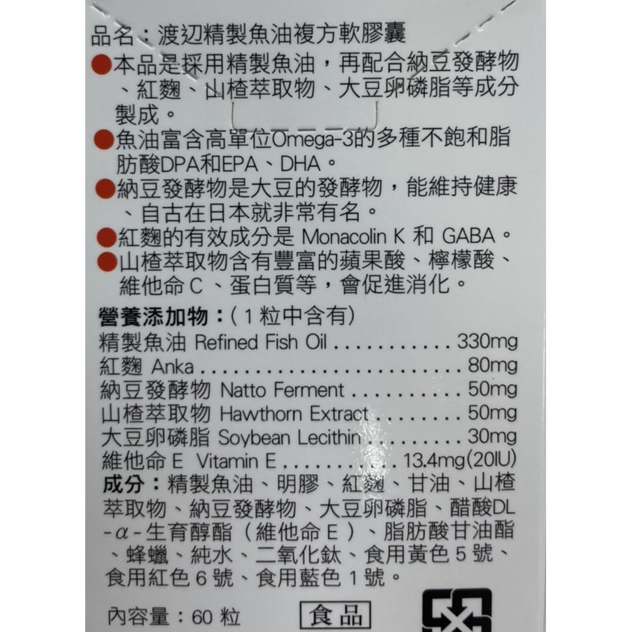 渡邊精製魚油複方軟膠囊 60粒裝渡邊精製魚油複方軟膠囊 60粒裝Well Being仁仁藥局線上購物