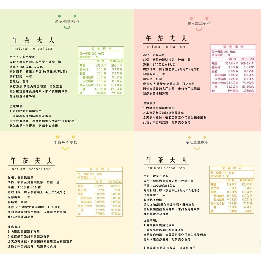 午茶夫人 天然果乾系列任選專區【天然果乾|下午茶】- 午茶夫人官方旗艦店金鑽鳳梨乾100g/袋|紅心芭樂乾100g/袋|愛文芒果乾100g/袋|洛神花乾100g/袋Dried Snacks午茶夫人官方旗艦店