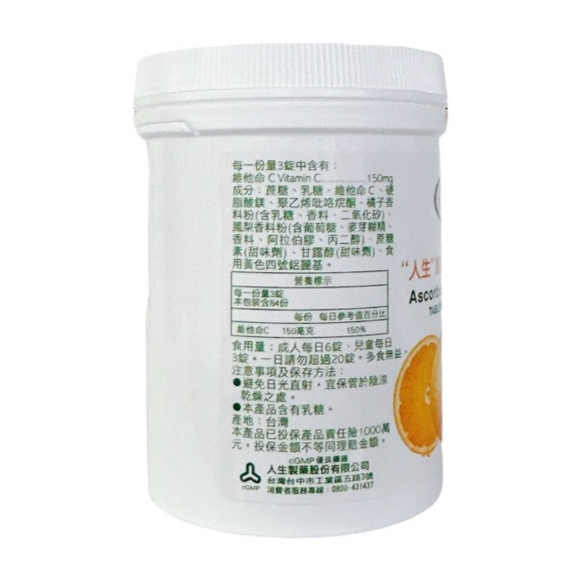 人生製藥 維生素C咀嚼錠50mg/罐【仁仁藥局】維生素C錠人生製藥 維生素C咀嚼錠50mg/罐Well Being仁仁藥局線上購物