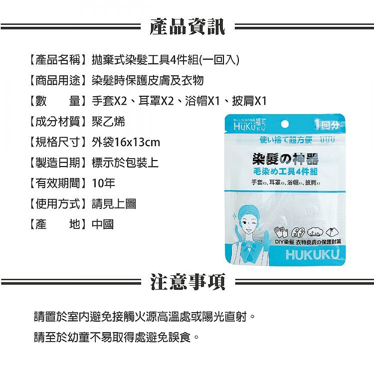 HUKUKU 福可 拋棄式染髮工具4件組(一回入)【小三美日】DS002588單一規格Hair Tools小三美日