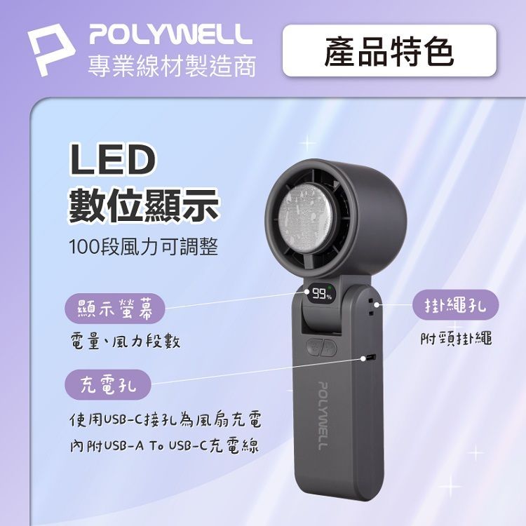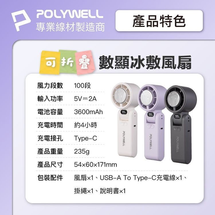 Polywell 寶利威爾 100段風速 折疊式 數顯冰敷 風扇 冰冷扇 冰涼扇【小三美日】空運禁送 DS026465白|紫|灰USB & Mobile Fans小三美日